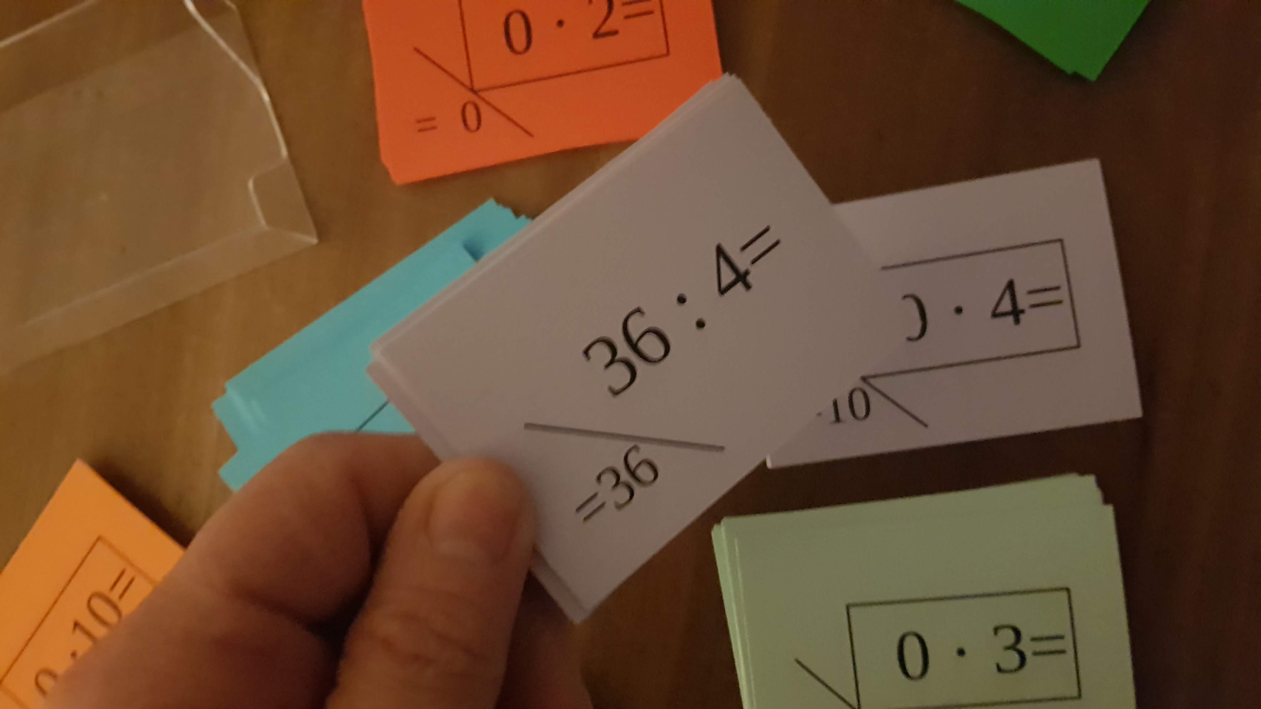 Die Einmaleinskärtchen/Divisionskärtchen habe ich neu drucken lassen. Sie sind jetzt nicht mehr in einer Plastikschachtel (sie zerbrach zu schnell), sondern in einer Kartonschachtel eingepackt.